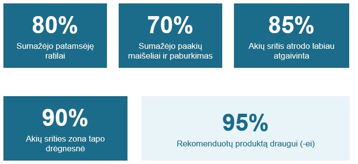 "Tai išskirtinis ir kliniškai įrodytas rezultatas – matomas poveikis pasireiškia ne per savaites, o jau per pirmąją valandą po produkto panaudojimo. Raukšlių gylio sumažėjimas iki 40% per 30 minučių – tai nauja standartizuotos paakių priežiūros norma."